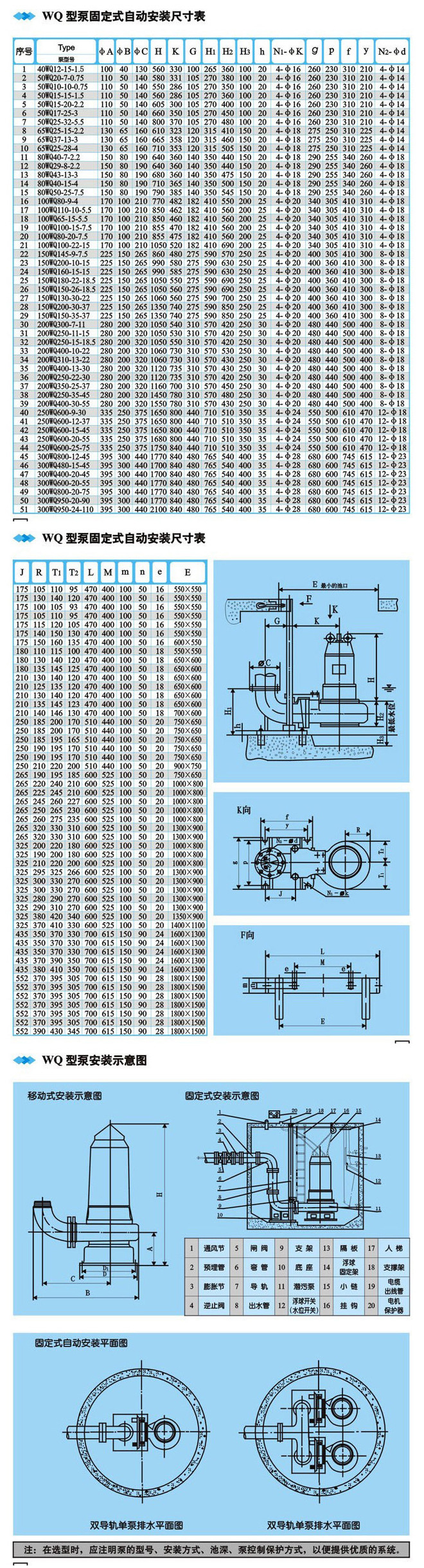 7.WQ系列可根據(jù)用戶需要配備雙導(dǎo)軌自動耦合安裝系統(tǒng),它給安裝、維修帶來更大方便,人可不必為此而進入污水坑。